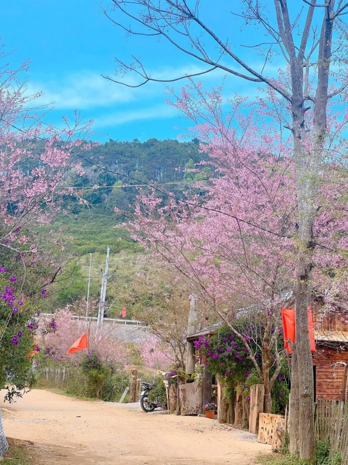 For a truly magical visit, plan your trip in December–January, when hoa anh đào (cherry blossoms) burst into bloom. The whole town blushes pink, turning streets and pine‑lined paths into a dreamy backdrop for your explorations. According to local statistics, Măng Đen now boasts more than 20,000 cherry blossom trees, concentrated mainly in the town center. Each winter, they unfurl in succession, creating soft pink ribbons against the clear blue sky. These trees are the result of planting and careful cultivation that began in the early 2010s, and today they transform the highland town into a poetic landscape that feels almost otherworldly.