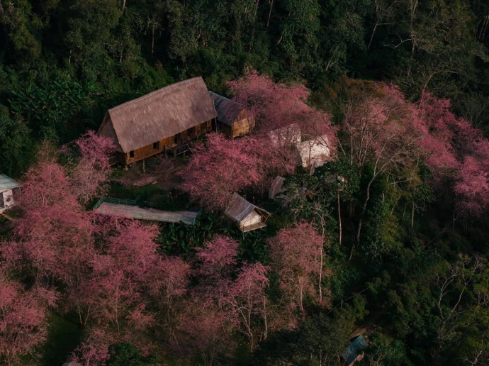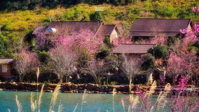 For a truly magical visit, plan your trip in December–January, when hoa anh đào (cherry blossoms) burst into bloom. The whole town blushes pink, turning streets and pine‑lined paths into a dreamy backdrop for your explorations. According to local statistics, Măng Đen now boasts more than 20,000 cherry blossom trees, concentrated mainly in the town center. Each winter, they unfurl in succession, creating soft pink ribbons against the clear blue sky. These trees are the result of planting and careful cultivation that began in the early 2010s, and today they transform the highland town into a poetic landscape that feels almost otherworldly.